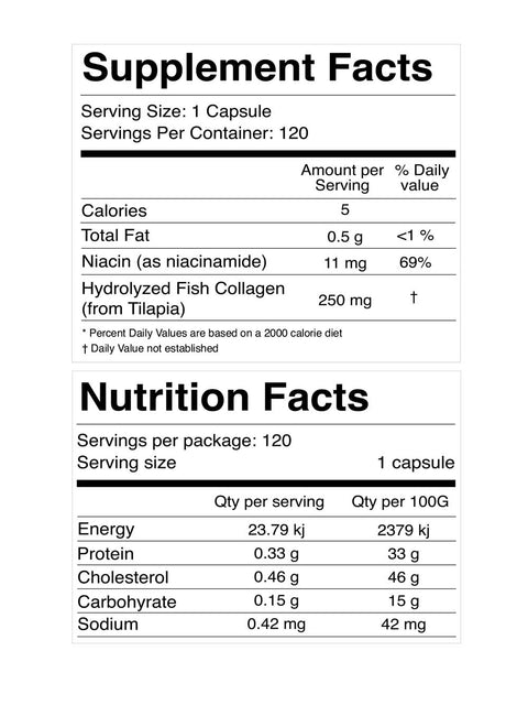 Each capsule contains 250mg of concentrated, natural, pure marine collagen, offering targeted benefits for your skin, brain, and body — all in a fast-absorbing, easy-to-swallow format.